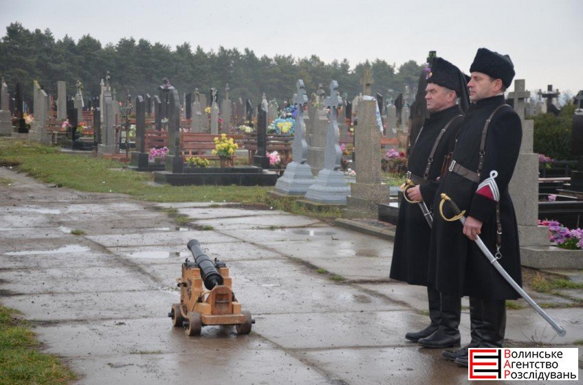 На могилі Героя відслужили службу. Козаки із Козацького Стрілецького Братства вистрелили з гармати, щоб віддати шану воїну.
