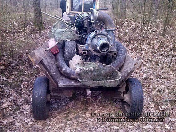 30 березня вранці до чергової частини Любешівського відділення поліції надійшло повідомлення по телефону про те, що неподалік села Судче цього ж району працює мотопомпа. Слідчо-оперативна група на місці події на території Залізницького лісництва виявила трактор кустарного виробництва. На причепі знаходилося обладнання, яке використовують для незаконного видобутку бурштину - мотопомпа, пожежні рукави та металеві труби.