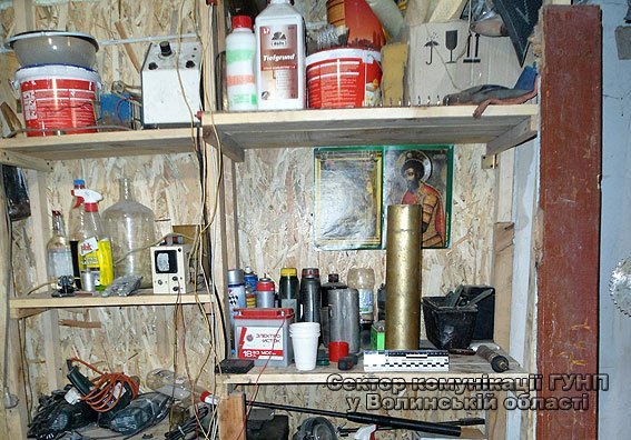 Мешканець Володимир-Волинського переховував у гаражі свого батька три мінометні та три протитанкові міни, два бронебійні снаряди калібру 128 мм, реактивний постріл, обріз рушниці та коробку патронів.