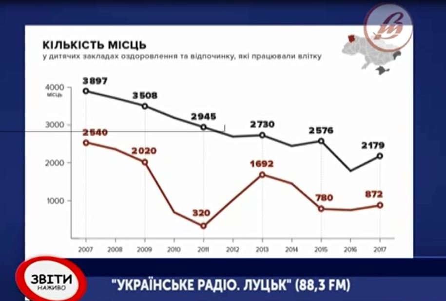 Щодо кількості місць, то 10 років тому їх було близько 4 тисяч, торік було лише трохи більше 2 тисяч місць. Щодо профспілкових закладів, то в 2007 році було 2540 місць, у 2017 році 872, хоча роком раніше було на 92 місця менше», - пояснила Іванна Дубинка-Філозоф.