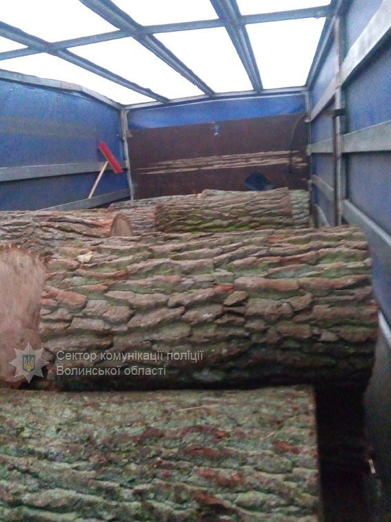 Поліцейські встановили, що автомобіль перевозив близько 7 метрів кубічних деревини породи дуб без належних на те документів.
