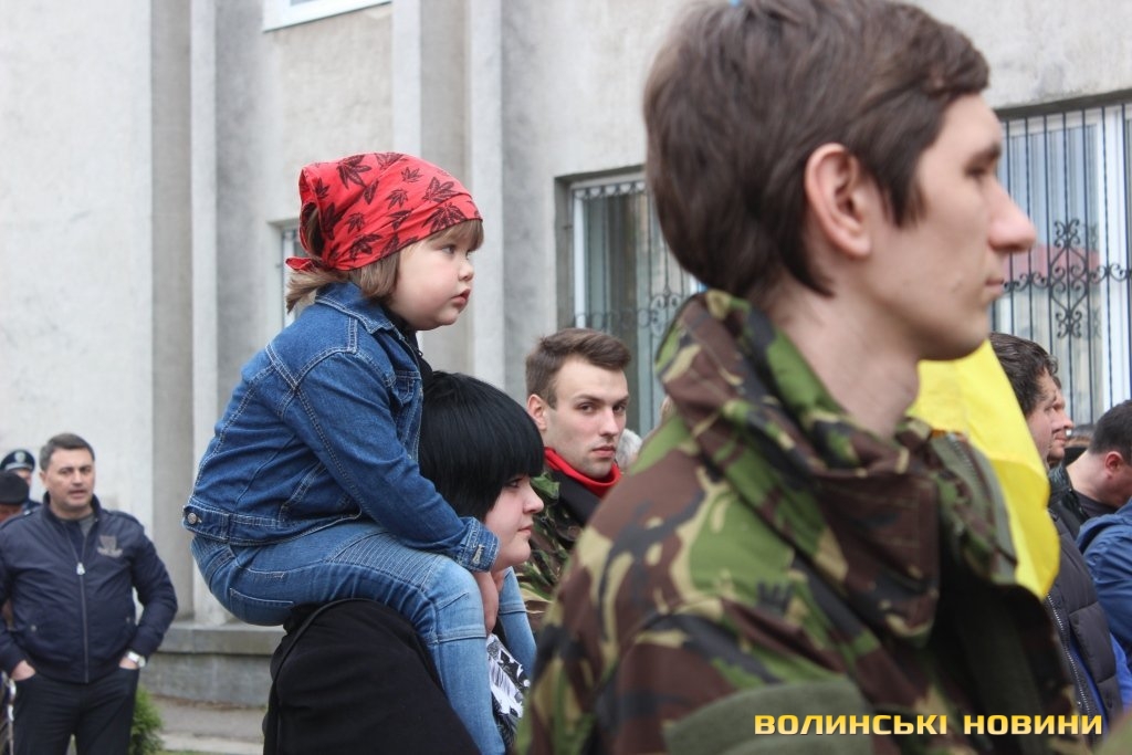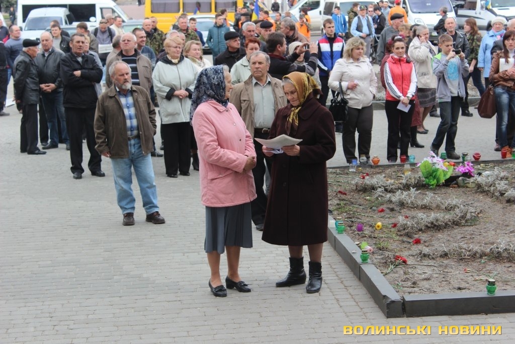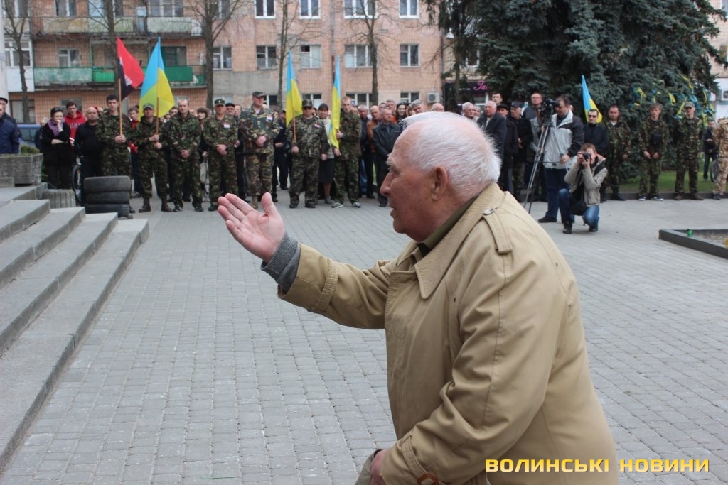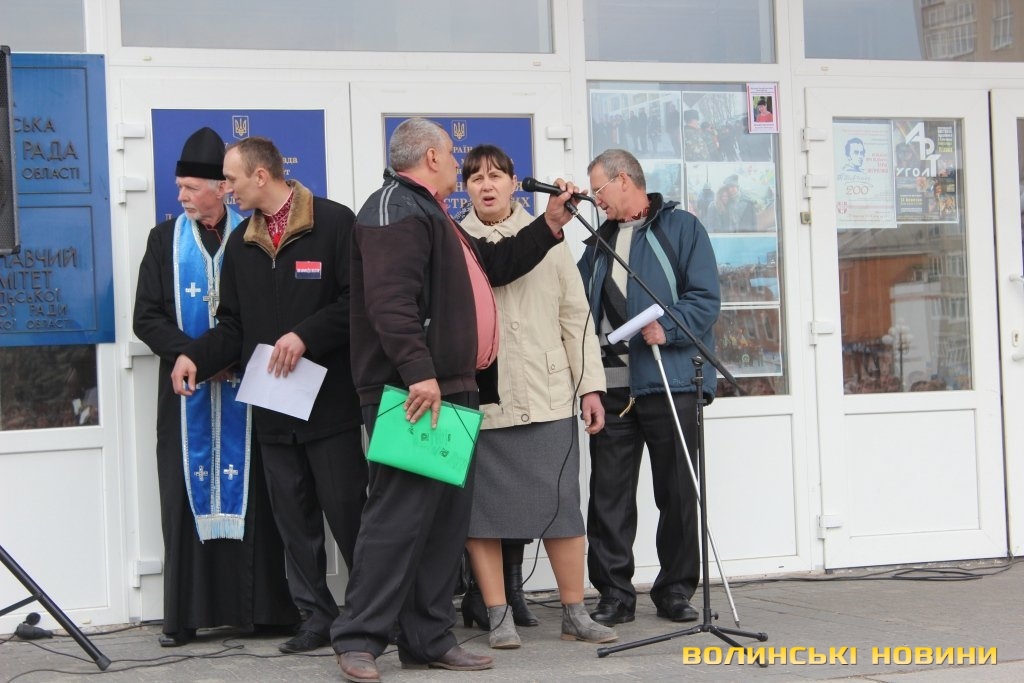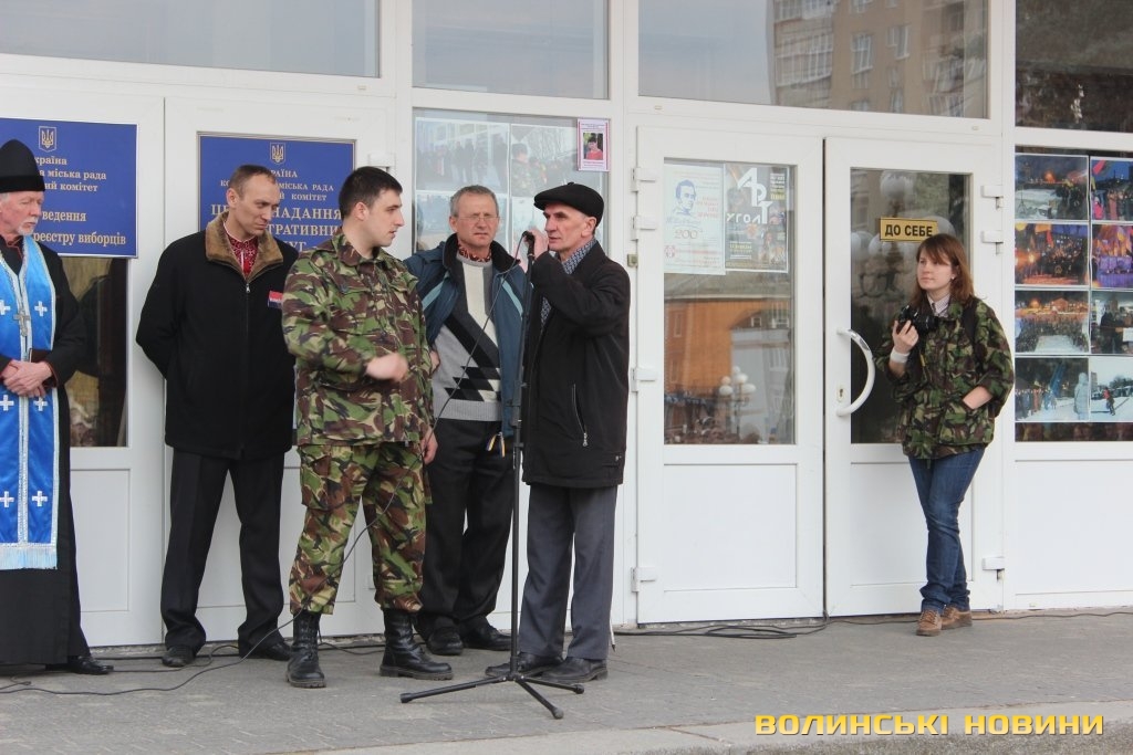 Поставити питання лідеру Правого сектора на Волині зголосилося декілька учасників віча. Так, чоловік літнього віку нагадав, що до виборів залишилося два місяці.