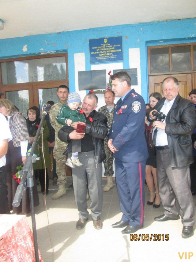 Окрім того, сьогодні 8 травня, на батьківщині загиблого бійця роти міліції спецпризначення «Світязь» Максима Ляшука, в селі Острожець Рівненської області Млинівського району, відбувся мітинг-реквієм із нагоди вручення призначеної Президентом України Петром Порошенком державної нагороди – медалі «За мужність» третього ступеня.