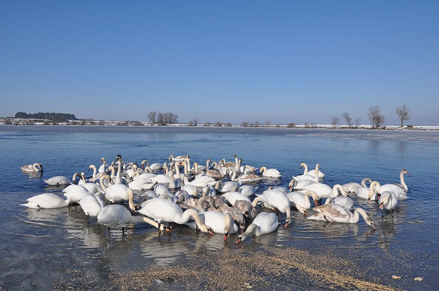 Птахи прилетіли сюди ще восени і, певно, відлетять навесні, коли потепліє. Адже влітку останніх років десять, кажуть, тут постійно гніздиться пара білосніжних лебедів і більше нікого з лебединої родини сюди в цю пору не підпускає.