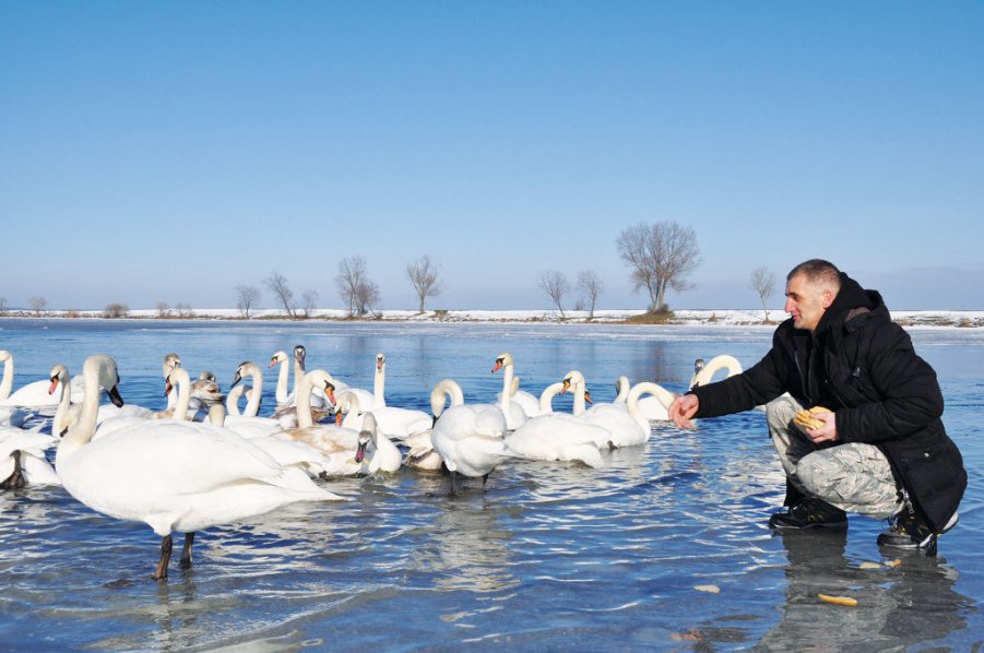 "Сюди, щоб побачити цих красенів, приїжджають жителі з міста, довколишніх сіл, підгодовують та фотографуються з лебедями, які, звиклі до людської присутності та уваги, підпливають досить близько й іноді навіть беруть частування з людських рук, — розповідає житель села Брониця Олександр Нікітчук, який теж доглядає за птахами.