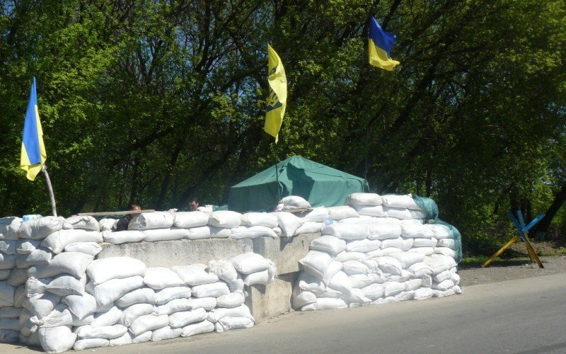Їхав сьогодні через цей блокпост, місцеві люди в маршрутці говорили, що хтось викрав машину правого сектору, не знаю правда це чи ні, так само як і те що це навчання. З автоматами були як і молоді хлопці так і старші чоловіки, шевронів в них не помітив, так що до якого підрозділу вони відносять теж не знаю, але була машина поліції.