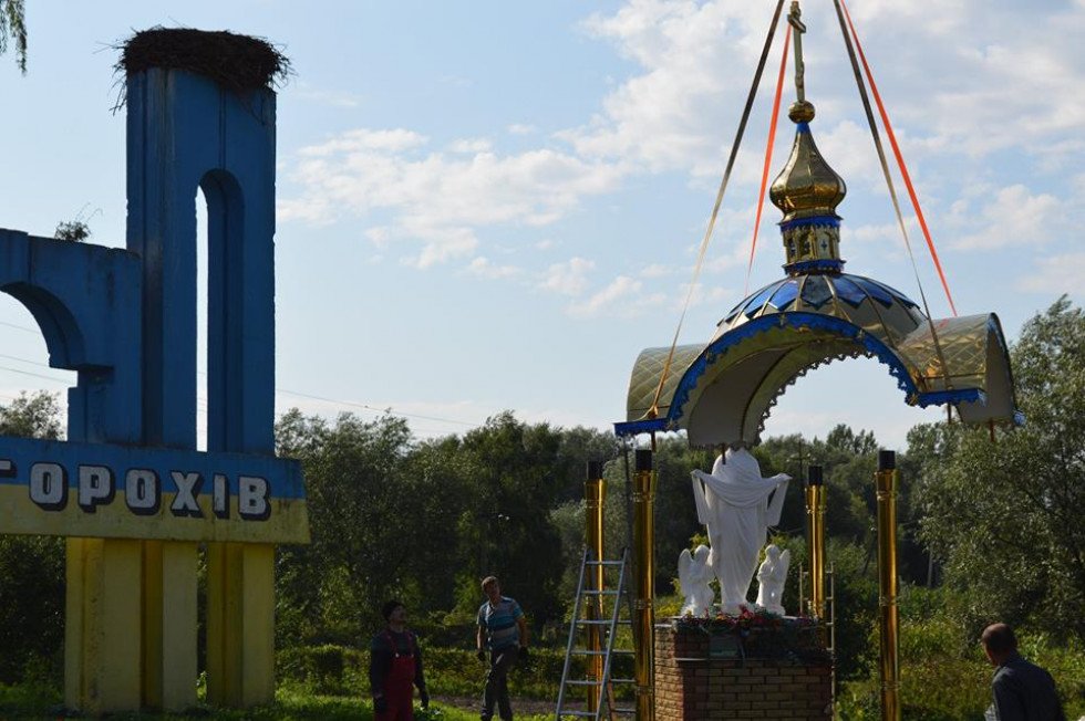 Відтепер гостей Горохова зустрічатиме капличка із фігурою Божої Матері, повідомляє Район.Горохів.