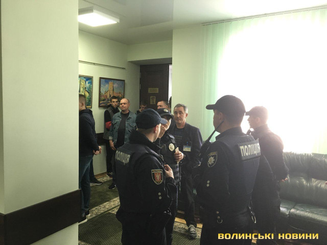 Чотири екіпажі патрульної поліції прибули під стіни Луцької міської ради. Поліцейські зайшли до приміщення, де 18 травня відбувається засідання виконавчого комітету міської ради.