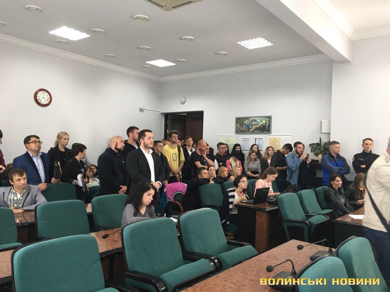 Чотири екіпажі патрульної поліції прибули під стіни Луцької міської ради. Поліцейські зайшли до приміщення, де 18 травня відбувається засідання виконавчого комітету міської ради.