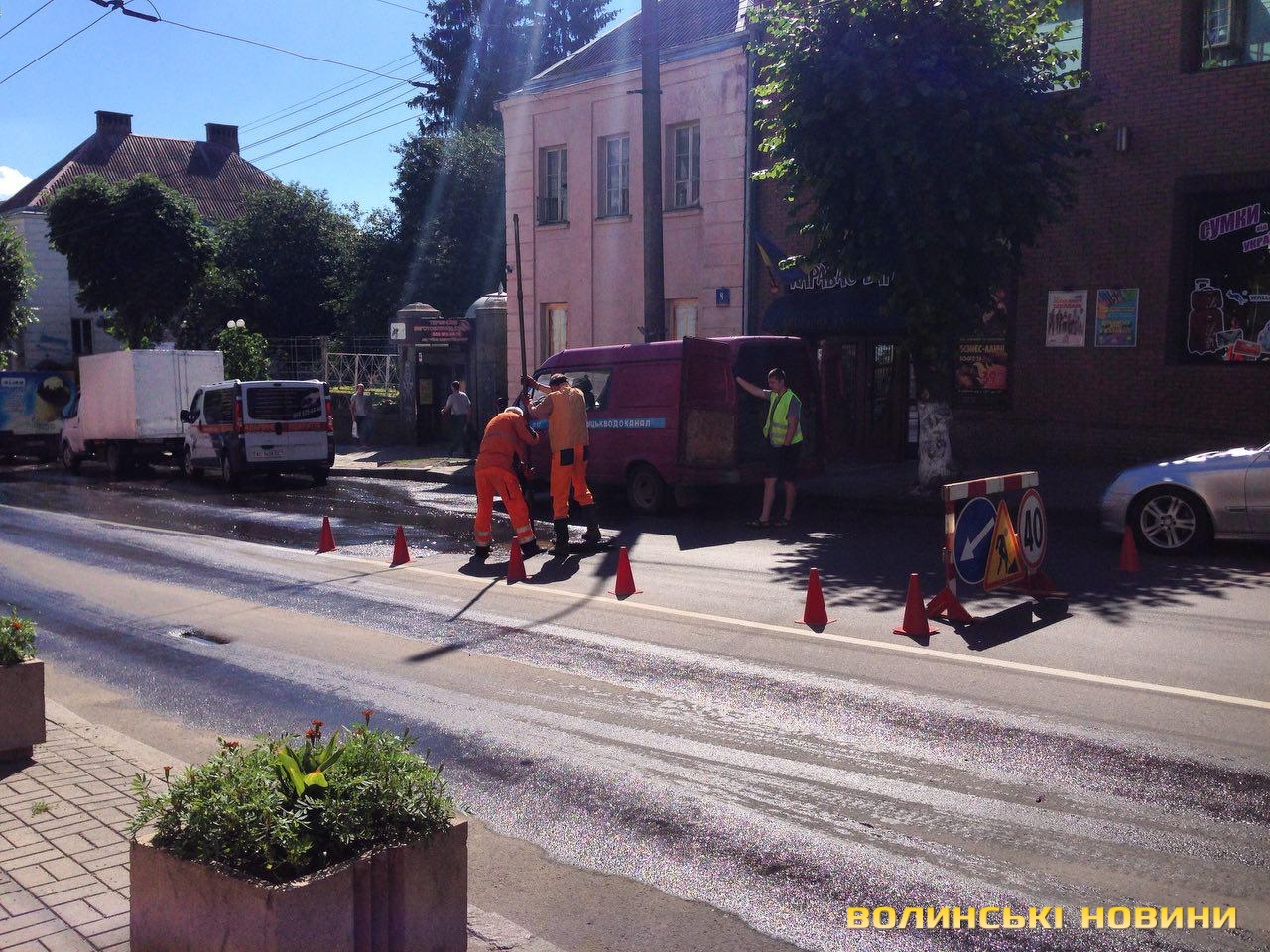 За станом на 10:06 на місці працюють робітники "Луцькводоканалу", які ліквіловують наслідки.