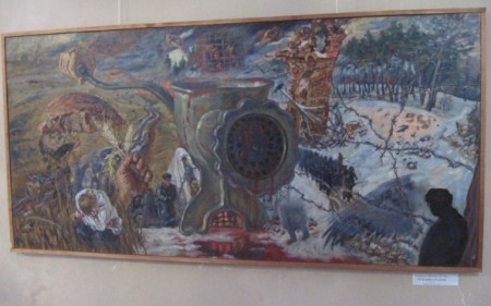 Зокрема на картині «М'ясорубка 30-х років» зображена величезна м'ясорубка, з якої тече кров.
