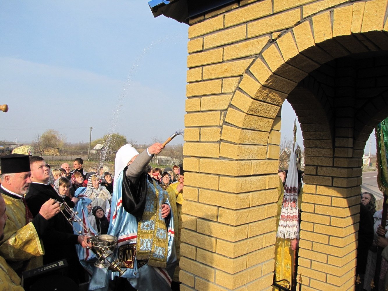 Перед відправою освячення відбувся хресний хід від церкви Святої Трійці. Із владикою співслужили декан протоієрей Микола Даньків та інше місцеве духовенство. У богослужінні взяли участь селищний голова Олексій Безсмертний, представники громадськості.