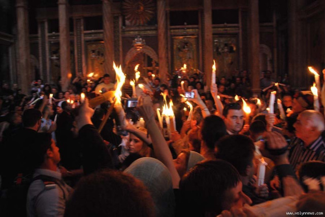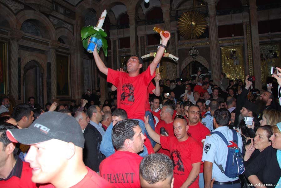 У суботу, 23 квітня паломники з України у храмі Воскресіння Господнього у Єрусалимі спостерігали за чудесним явленням вогню. Волинські паломники стояли в декількох метрах від Гробу Господнього і одні з перших отримали вогонь.