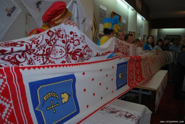 Вишитий червоно-чорними нитками рушник чотирьох волинських майстринь 25 липня приєднали до 62-метрового рушника вишивальниць з 22 областей України в рамках проекту «Єдина Україна: Схід і Захід разом».