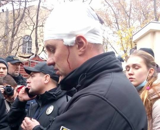 За його словами, під час сутичок його вдарили металевим прутом із натовпу. Начальнику поліції надали першу медичну допомогу. За госпоталізацією він не звертався.