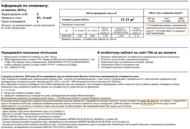Крім того, в 2017 році, Національна комісія, що здійснює регулювання в сферах енергетики та комунальних послуг (НКРЕКП), запровадила інформування населення про спожитий обсяг природного газу в перерахунку на енергетичні одиниці.