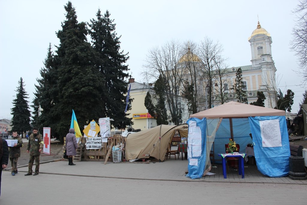 «Вчора був конфлікт з п’яними молодими людьми, гопниками, пов’язаний з існуванням наметового містечка. Воно вже перетворилося на притон для всякого «зброду», де розпивають алкоголь, є бійки, можливо, дрібні злочини. Ми поспілкувалися з його координатором Миколою Собуцьким і вирішили, що сьогодні воно згортається, а відзавтра діятиме лише інформаційний пункт», запевнив він.