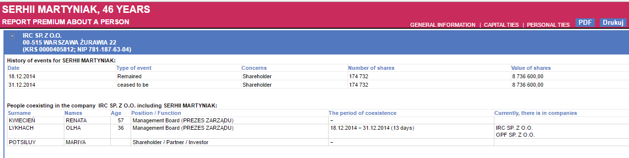 Журналісти встановили, що наразі фірма «IRC» скуповує нерухомість у Варшаві. А це - 3 квартири, вартістю, за попередніми розрахункам журналістів, в мільйон доларів. Разом з нерухомістю в Іспанії це складає мільйони доларів.