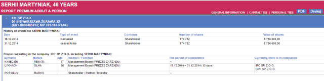Бізнес і депутатський мандат – речі несумісні. Втім, журналістам вдалося з’ясувати, що Сергій Мартиняк майже півроку мав частку у власності польської фірми «IRC». Проте у декларації народного депутат згадки про це немає.