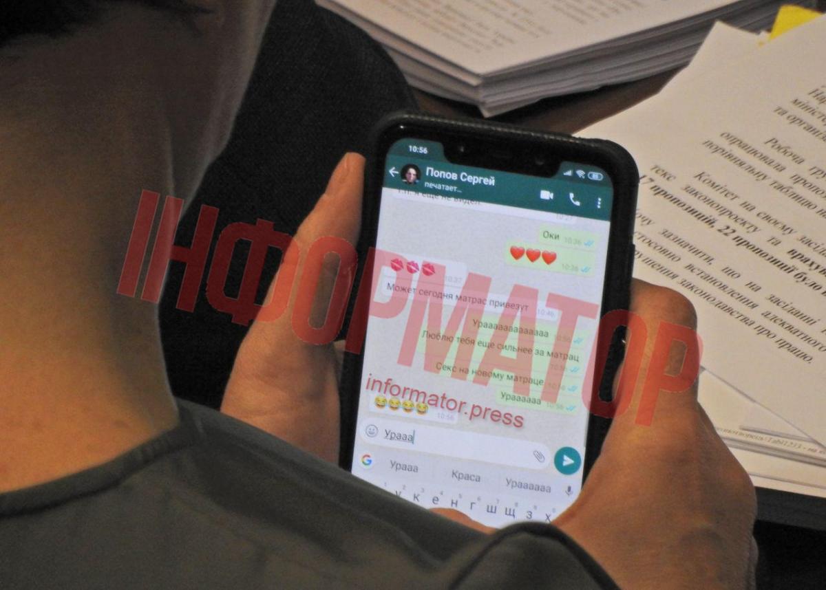 Як повідомляє «Інформатор», це сталося під час ранкової сесії ВР, де обговорювали закон «Про особливий порядок місцевого самоврядування в ОРДЛО». Третьякова листувалася з чоловіком Сергієм Поповим.