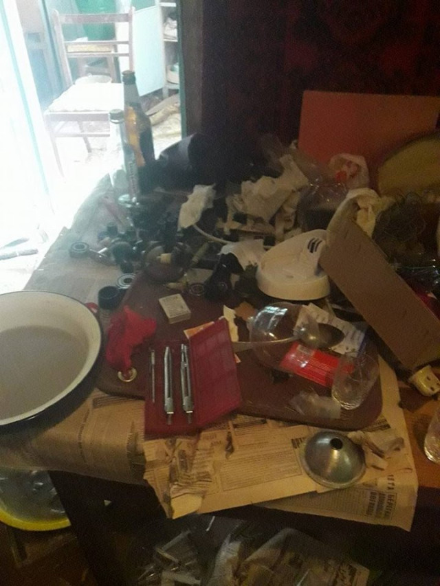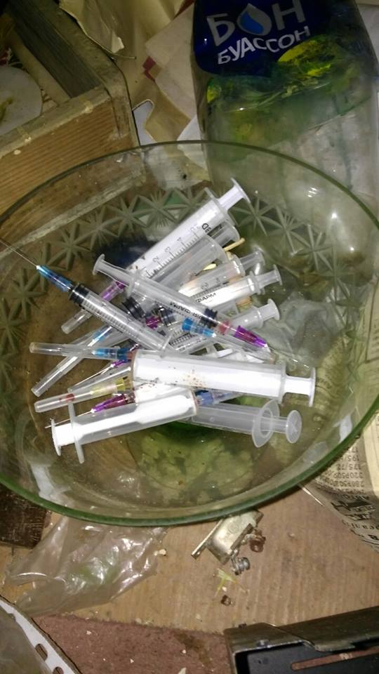 У будівлі був безлад, розкидані речі, а також велика кількість шприців, в тому числі, забруднених кров’ю, залишки невідомої білої речовини.
