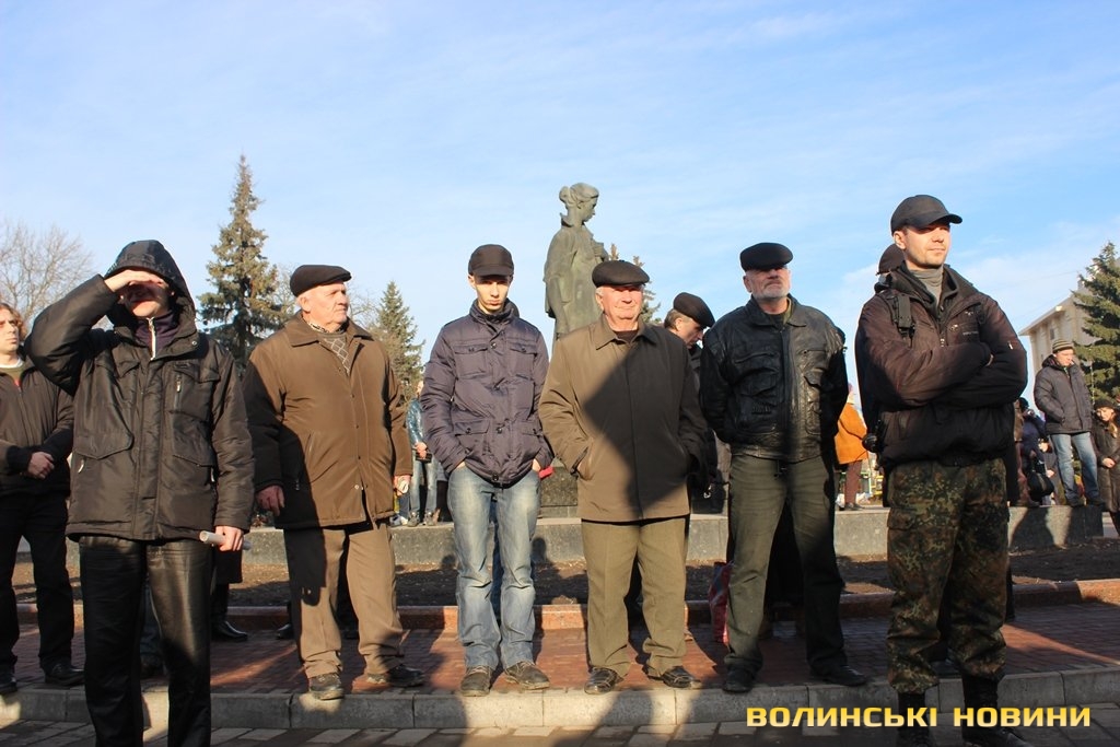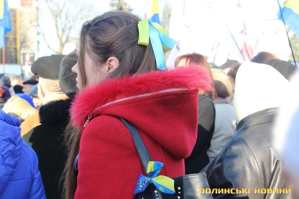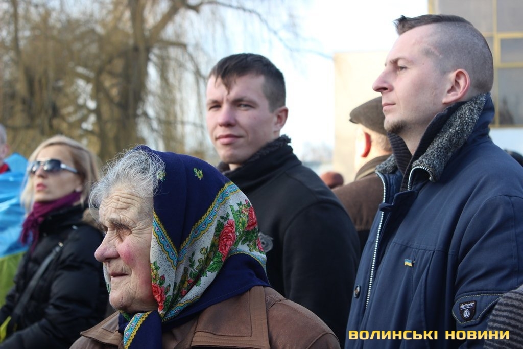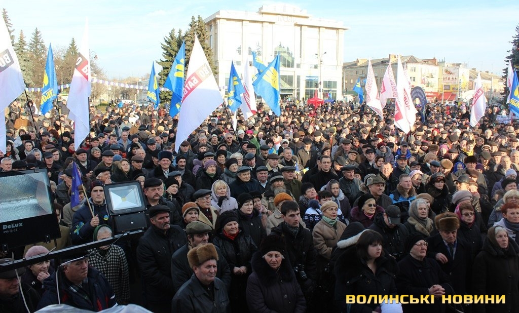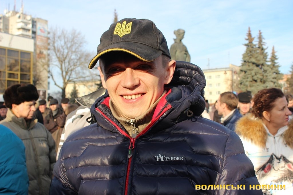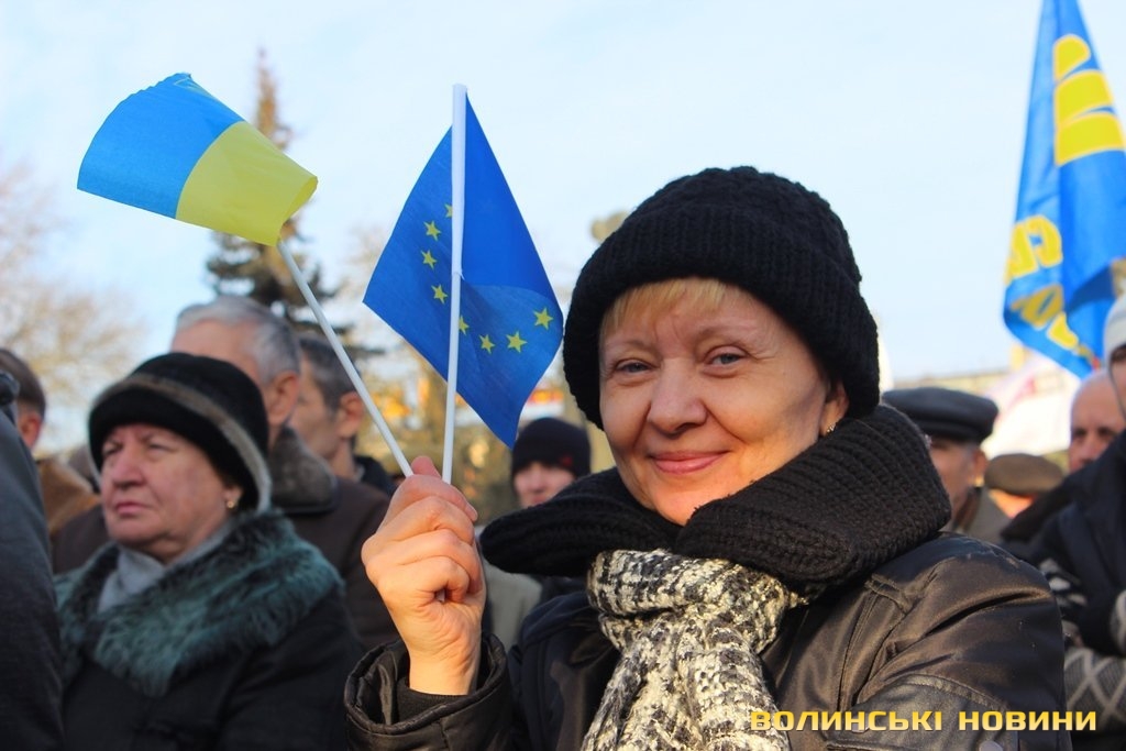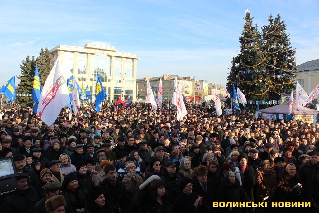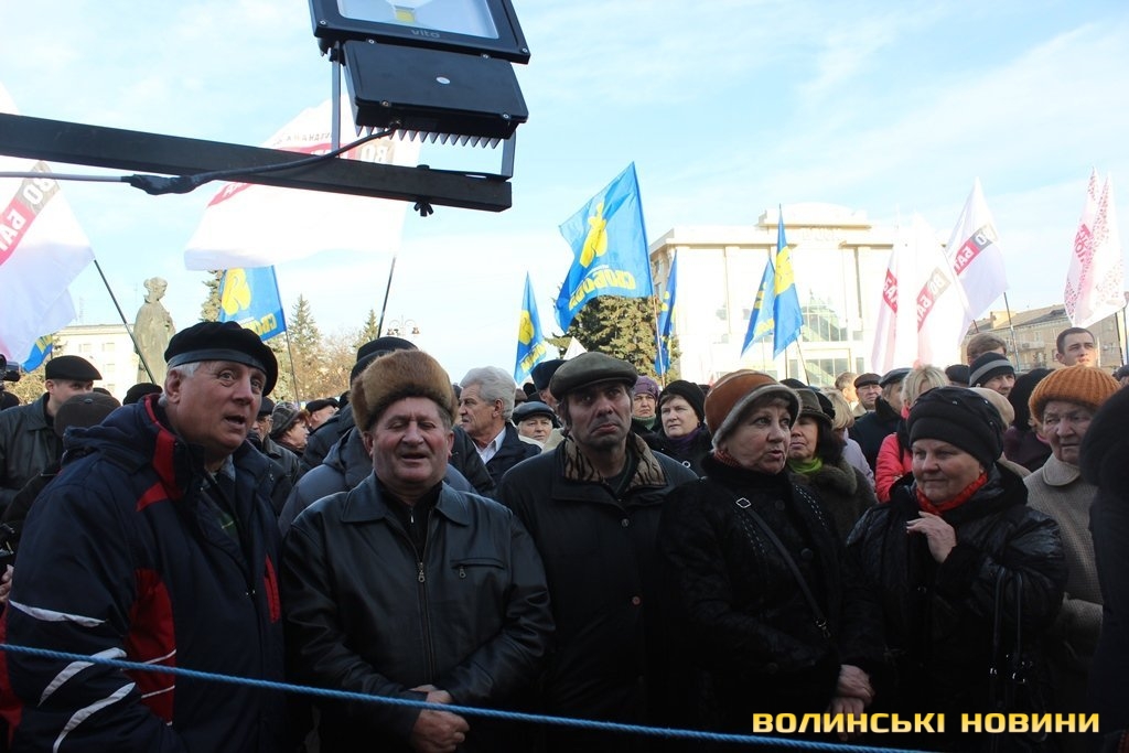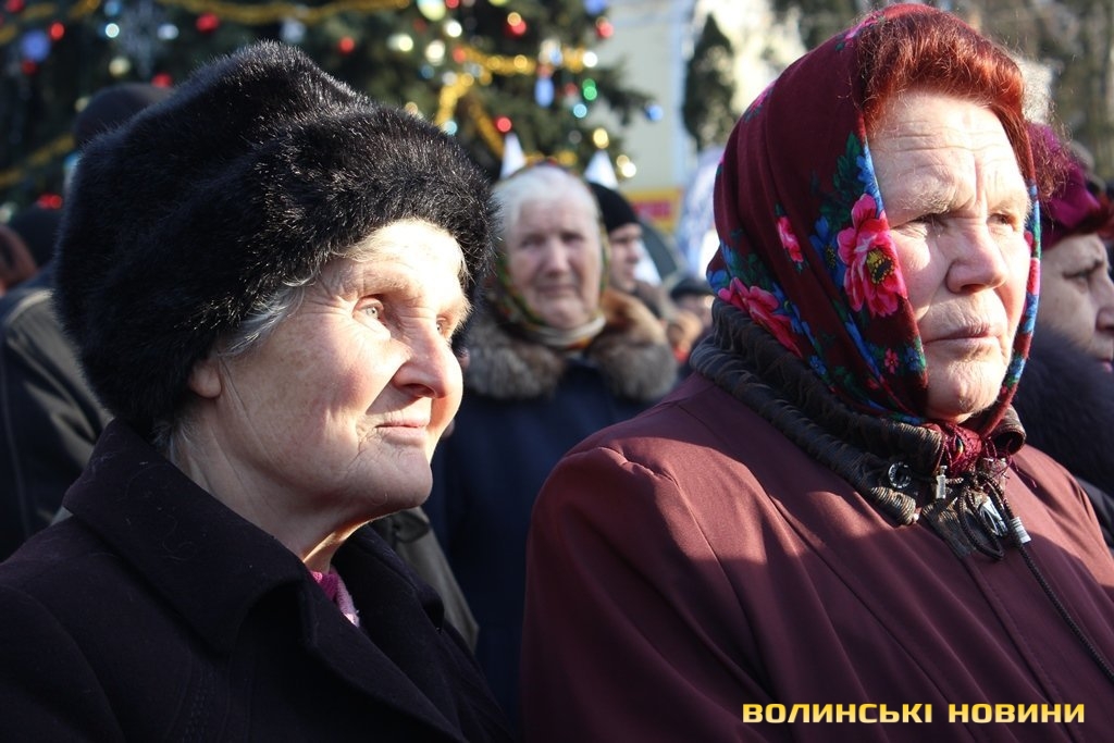 Серед людей, які прийшли на народне віче, більшість були старшого віку, прийшли і сім’ями з маленькими дітьми. Відстояти майбутнє України приїхала 67 літня пані Ніна з селища міського типу Цумань Ківерцівського району.Вона каже, шо приїхала в обласний центр, на народне віче, бо здоров’я не дозволяє їхати у столицю. А тут, каже, щоб підтримати молодь і вигнати бандитів. Бідкається, що пропрацювала в медицині 39 років, а пенсія нижча середньої. Та наголосила пані Ніна, що ми – європейці, живемо в центрі Європи, тому і рівень життя повинен бути європейський.