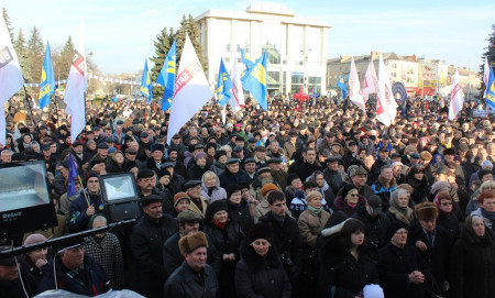 Зі слів опозиційних політиків, їм стало відомо, що Міністерство доходів і зборів України «давитиме» їх бізнес після нового року. Також, зі сцени озвучили, що починається збір підписів щодо відставки голови обласної ради Володимира Войтовича і голови облдержадміністрації Бориса Клімчука.