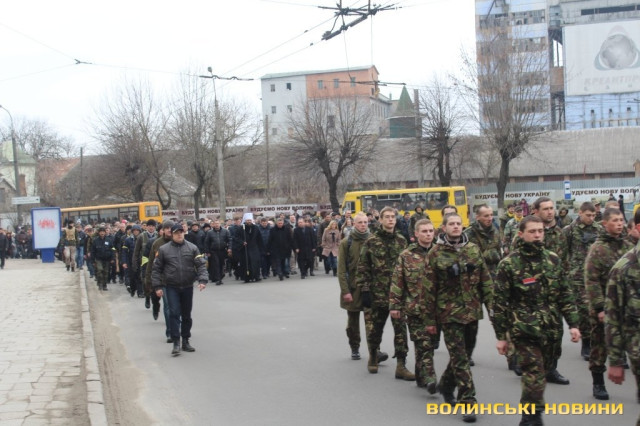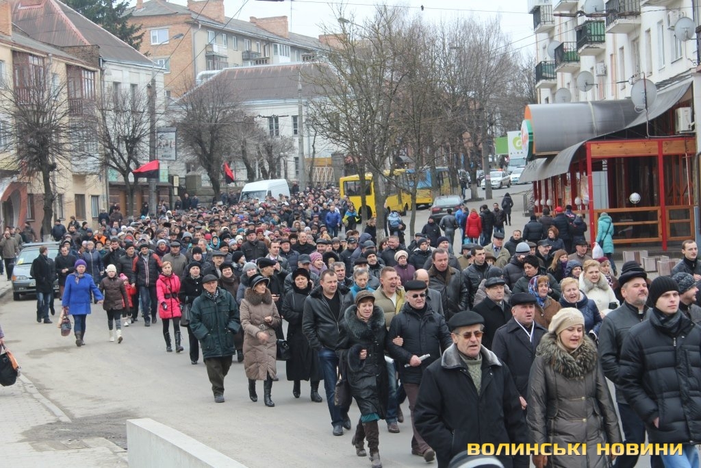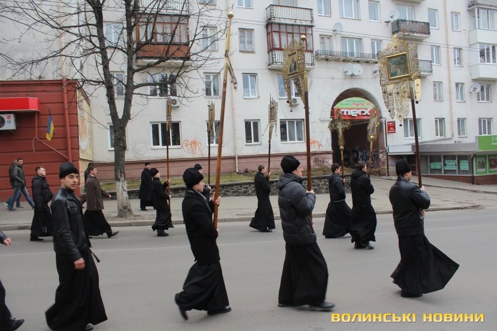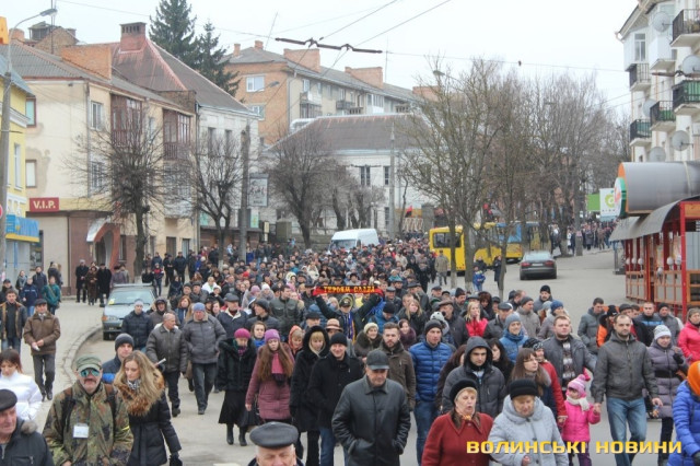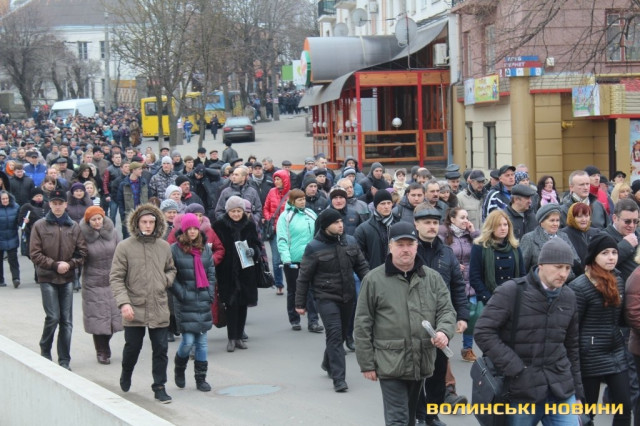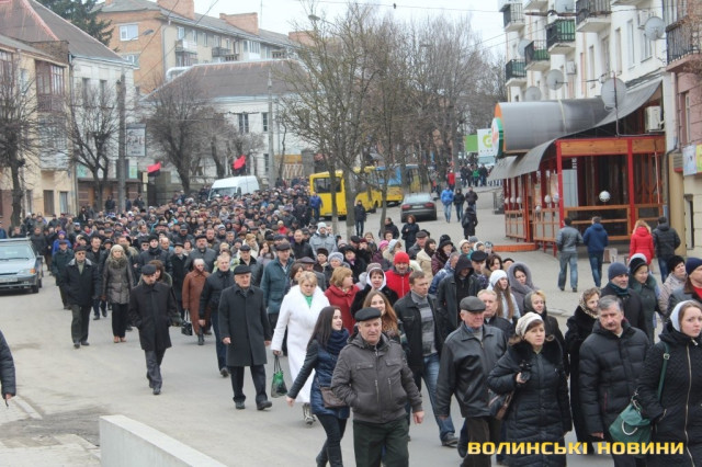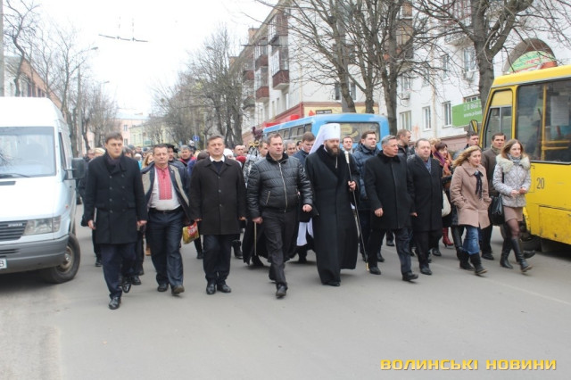 Після завершення Народного Віча, що відбулося 2 березня під гаслом «Збережемо Україну» багатотисячна хода вирушила вулицями Луцька. На чолі колони, окрім представників духовенства, крокували бійці «Правого сектору». Учасники ходи вигукували гасла «слава Україні – героям слава» та «Путін - геть». Біля могили Василя Мойсея громада спільно зі священиками молилася за упокій душ усіх бійців Небесної Сотні.