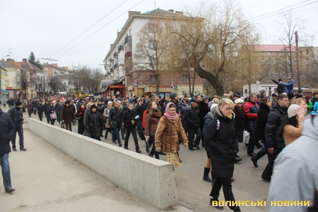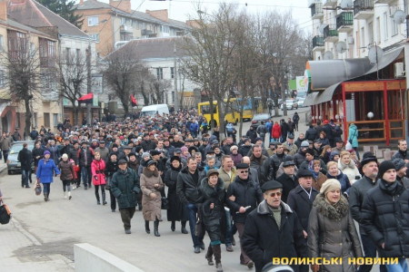 Тисячі лучан вшанували пам'ять загиблого у Києві волинянина Василя Мойсея, пройшовши від Театрального майдану до його місця поховання на меморіальному комплексі «Вічна слава».