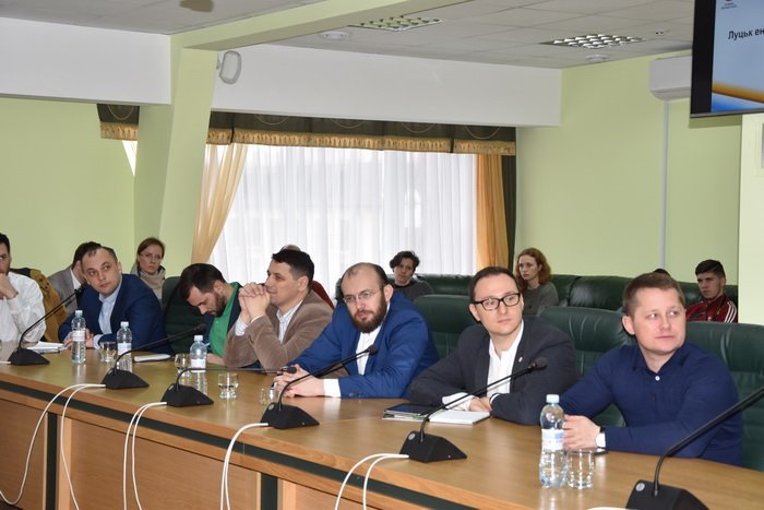 Начальник відділу енергозбереження департаменту економічної політики Костянтин Патракеєв підготував відеопрезентацію “Луцьк енергоефективний”, під час якої він також розповів про Програму сприяння діяльності ОСББ на території міста Луцька та Програму відшкодування відсоткових ставок за залученими кредитами. Сергій Кошарук презентував “Волинь енергоефективну”.
