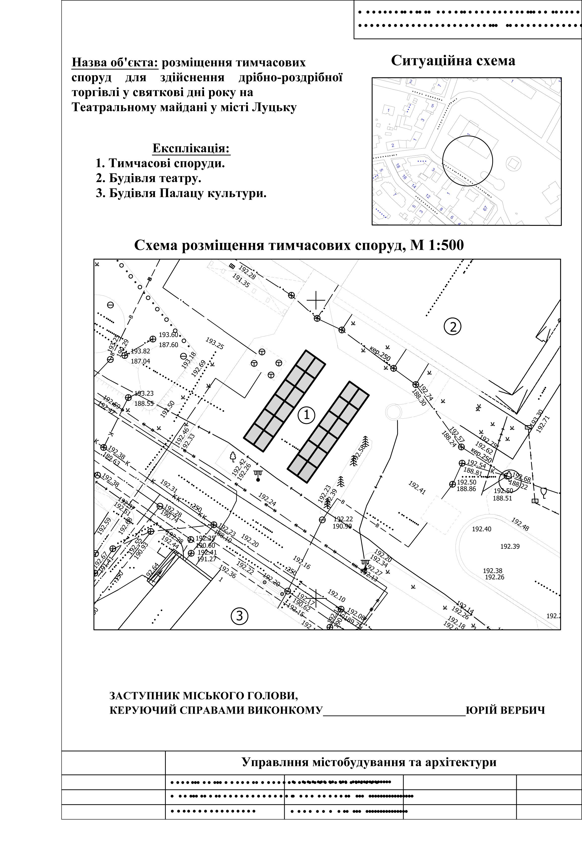 Для ували рішення, членам засідання запропонували Проект рішення «Про комплексну схему розміщення тимчасових споруд для провадження підприємницької діяльності у святкові дні на Театральному майдані».