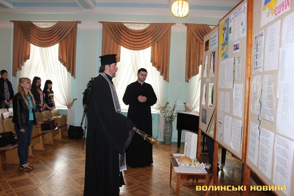 Опісля священики відслужили панахиду за загиблими на Євромайдані.«У світі все змінюється, окрім зброї. В церкви – це піст і молитва, в агресорів – це жадібність, гордість. У цьому залі зібралися люди різних релігійних поглядів, культурних традицій, втім, ми одностайні в одному: ми – українці. На нашій землі виросла нова нація, яке не готова миритися з ганьбою. Ми повинні цінувати те, що маємо», - звернувся до присутніх отець Михаїл Онищук.