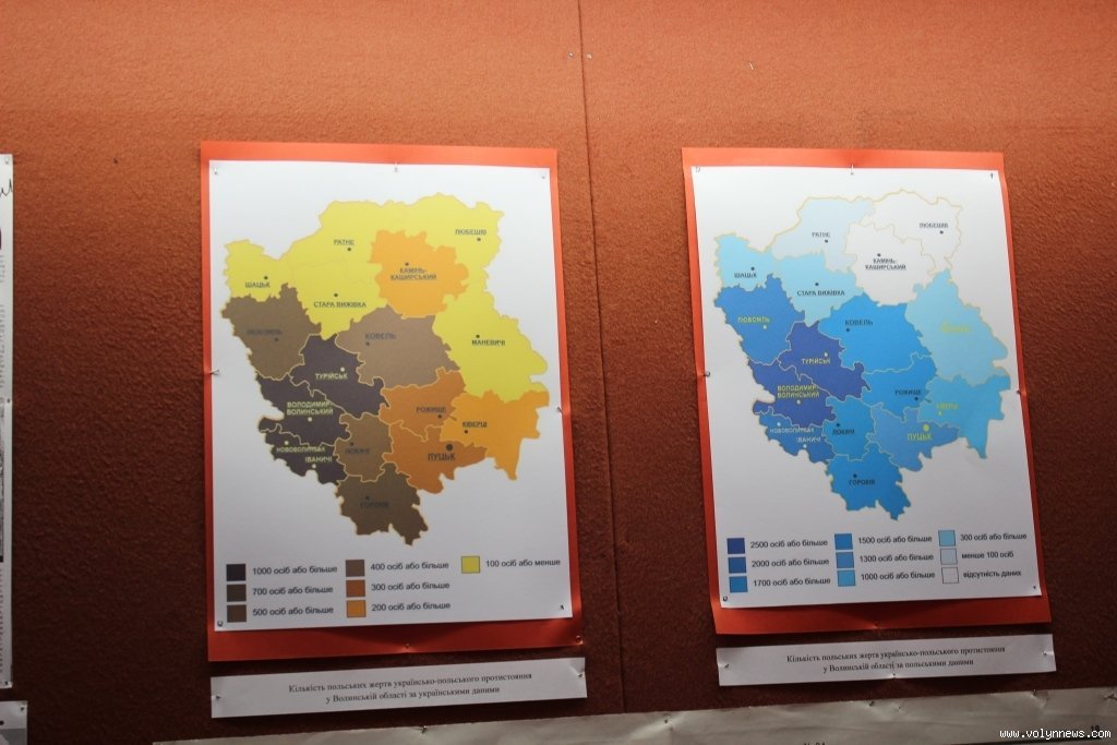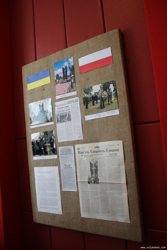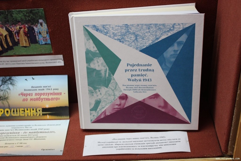 У центрі виставки розташований стенд, присвячений відкриттю пам’ятника польсько-українського примирення у селі Павлівка на Волині у 2003 році. За словами директора Волинського краєзнавчого музею Анатолія Силюка, із того часу, на жаль, міждержавні відносини зробили крок назад.