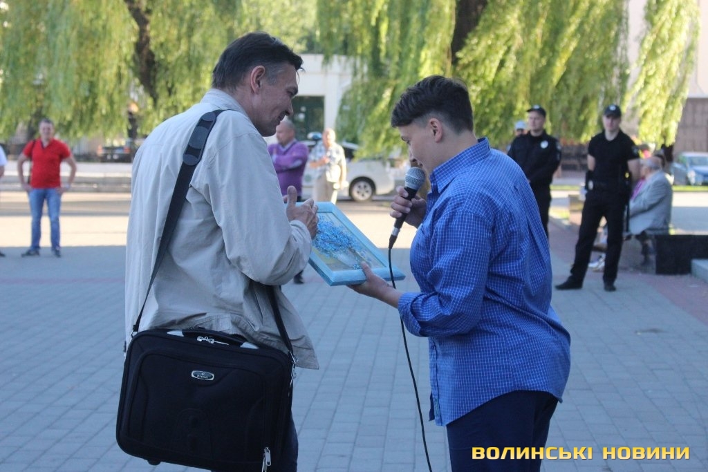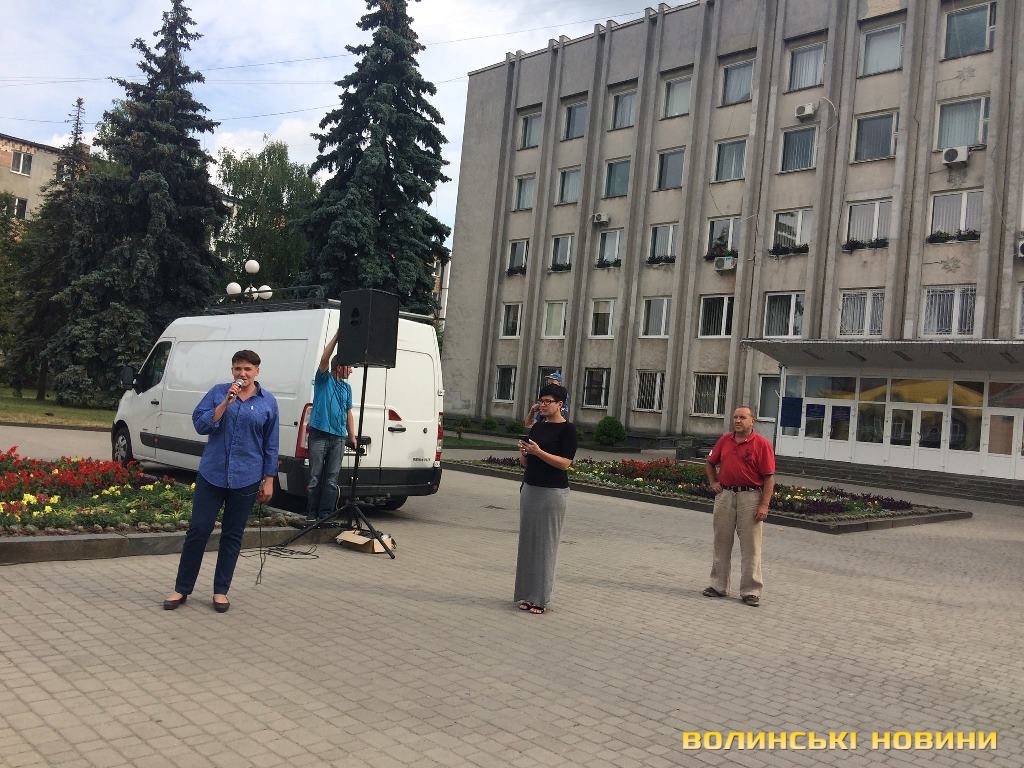 Отож, першою зупинкою у так званому турі Волинню став Володимир-Волинський, який вона відвідала 8-го липня. Однак невелика кількість присутніх на зустрічі викликала невдоволення Савченко.