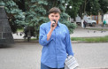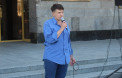 «Думала, що буду сьогодні говорити з голубами… харашо, що вони тут є… Таке мальовниче місто, таке велике і розвинуте, люди ходять і, в принципі, політики їм не потрібні, говорити із ними не потрібно, запитати у них немає чого», - обурювалася Савченко малій кількості людей та їх байдужості до її приїзду..