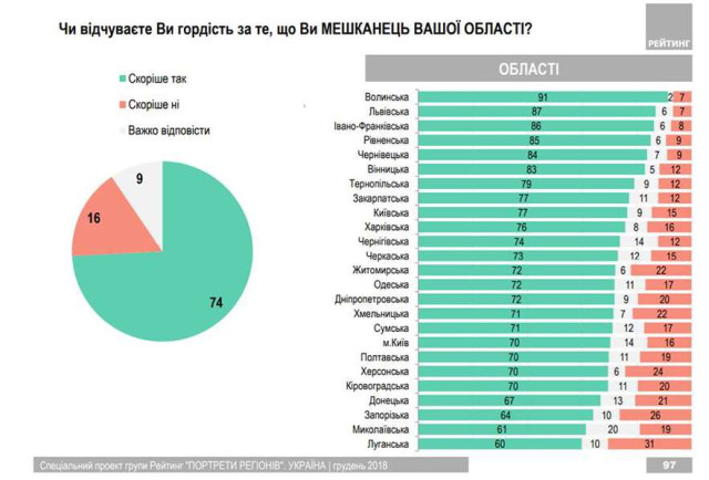 91% волинян гордяться тим, що вони народилися і проживають на Волині, а 92% – тим, що живуть у своєму місті чи селищі.