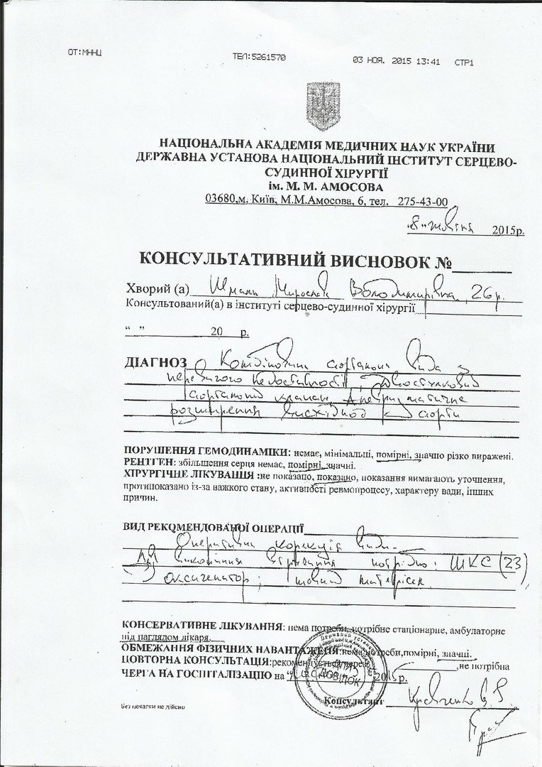 Їй показана операція Бентала де Боне (заміна аортального клапана і пластика аорти), при якій тільки композитивний протез коштує 2000$, плюс інші витратні матеріали в межах 50-60 тисяч гривень.