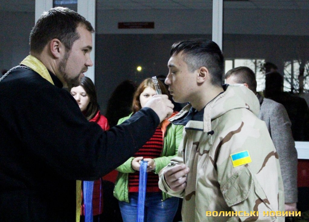 Священик Храму Холмської ікони Божої Матері отець Юрій, який читав молитву перед відправленням бійців на Схід, зауважив, що добровольці – небайдужі, і це дуже важливо. Він розповів, що застерігав прихожан ще навесні, говорячи, що починається війна, а байдужість у такий час – страшна річ.