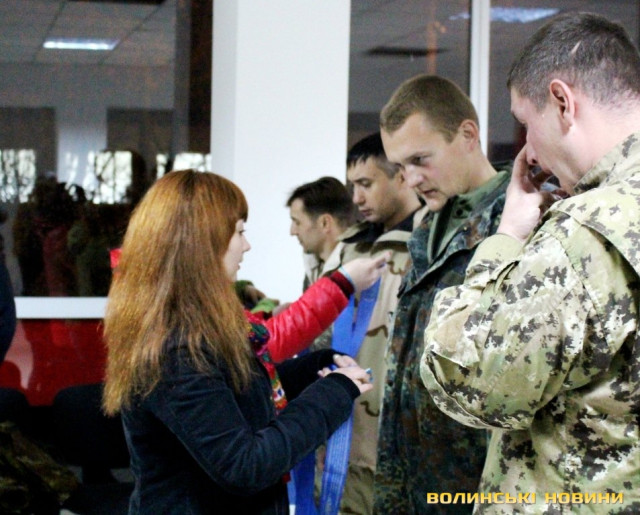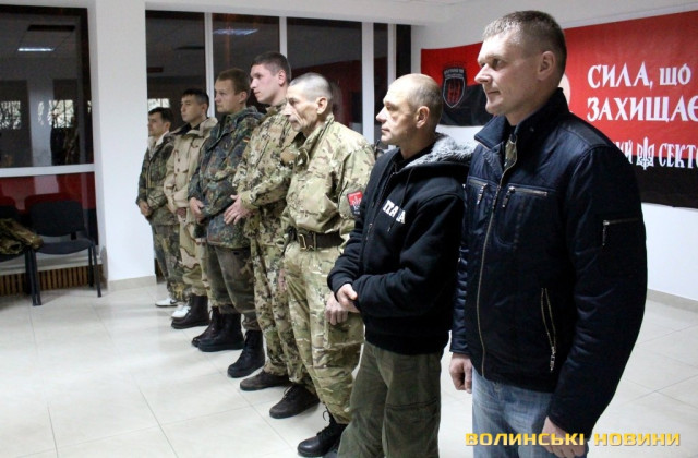 Група бійців Добровольчого Українського Корпусу вирушила у зону проведення АТО з Луцька.