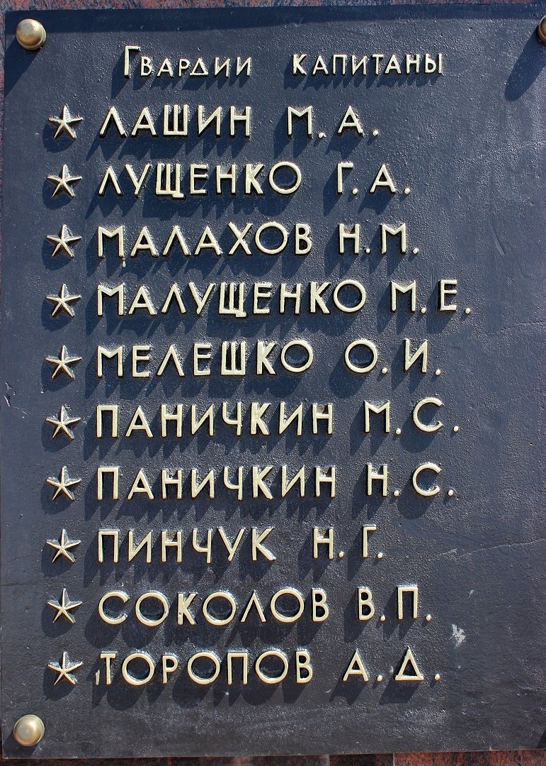 Також прізвище та ініціали українського Героя викарбувані на одній з меморіальних плит меморіального комплексу Вічної Слави на площі Маршала Василевського в Калініграді (колишній Кьонігсберг).