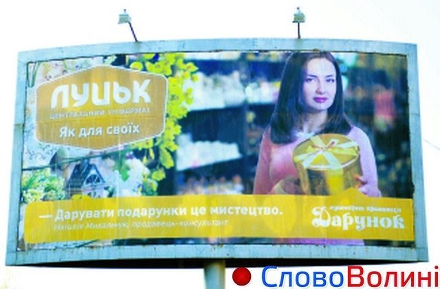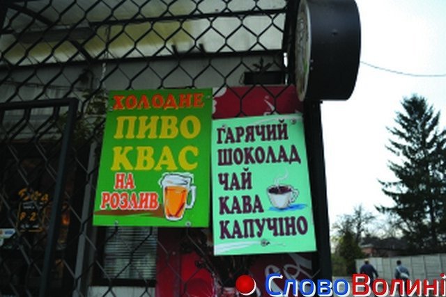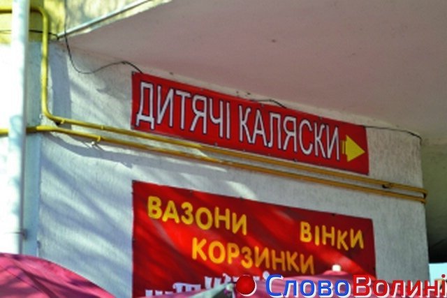 Згідно з версією «Слова Волині», перли на вивісках та білбордах на вулицях міста можна умовно поділити на кілька груп. Перша – найчисленніша – кальки з російської. Чого тільки не начитаєшся: тут вам і «друкуючі» пристрої замість «пристрої для друку», і «енергозберігаючі» лампи (чомусь не енергоощадні!) можна купувати, і «залогова» каса красується на проспекті Волі (дозволимо собі припустити, що мало б бути щось на кшталт «гроші під заставу»), і «горящі» путівки хоч зараз бери. Тільки б не обпектися на таких пропозиціях, бо ж хто його зна, якої якості послуги надають підприємства, що назватися правильно не можуть. А вже звернутися за консультацією до продавців «калясок» я точно не ризикнула б, - пише автор статті на «Слові Волині».