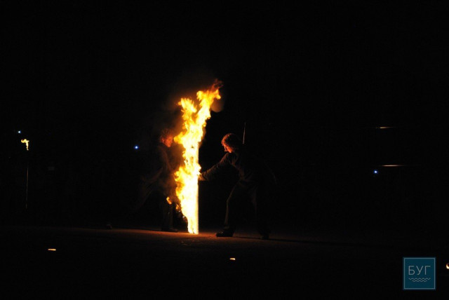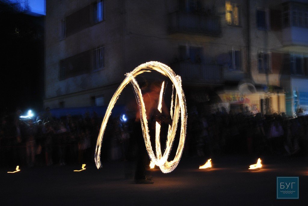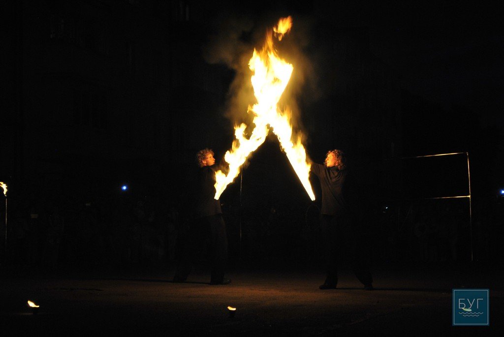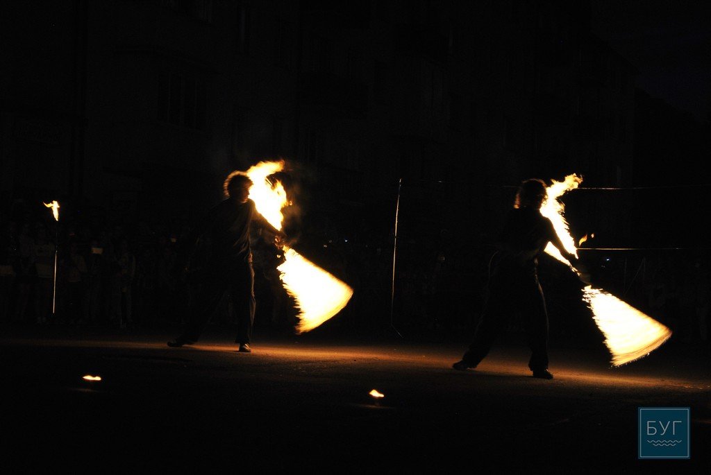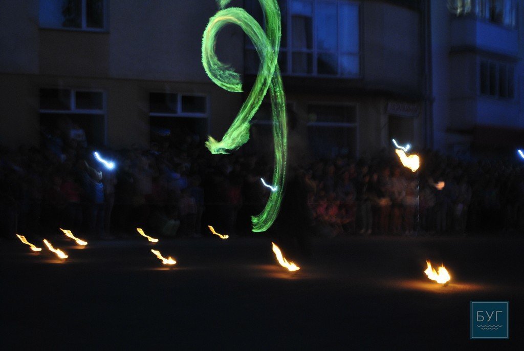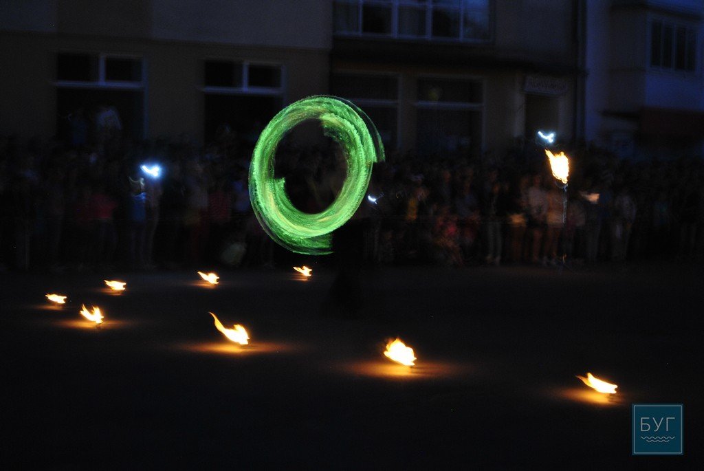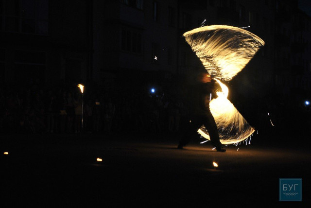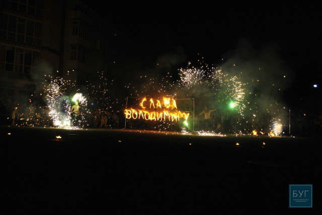 Цьогоріч фінальне дійство у день народження Володимира-Волинського було незвичайним, адже замість традиційного салюту – організатори свята запросили акторів театру вогню “Аладдін” із Луцька. Небезпечні трюки із палаючими смолоскипами викликали захоплення городян. А у фіналі шоу – запалали слова “Слава Володимиру”. Фоторепортаж пропонують наші колеги з видання БУГ.