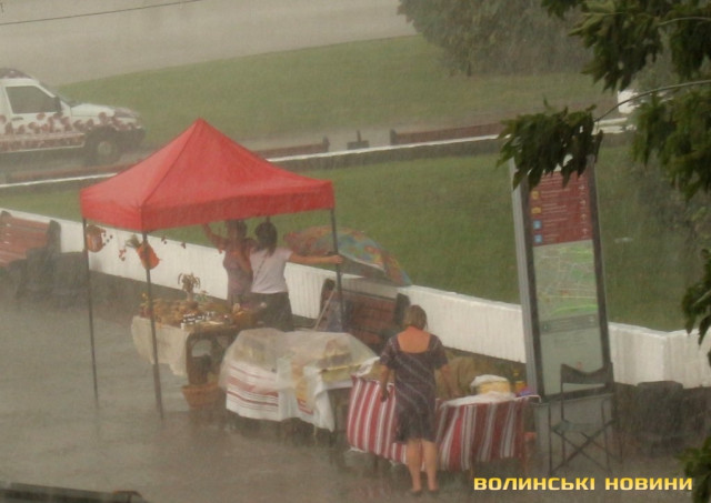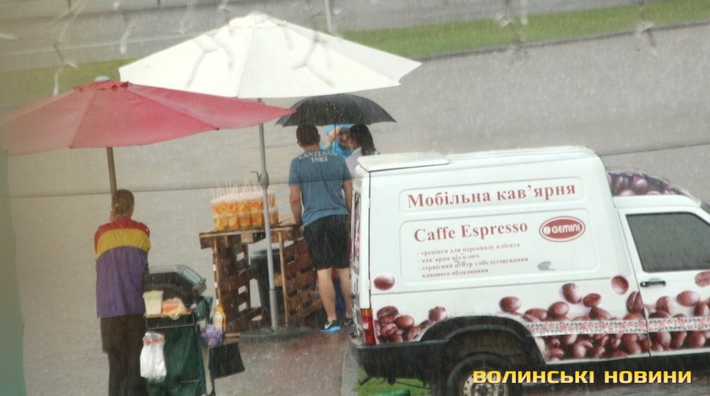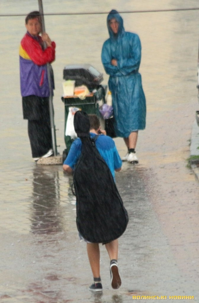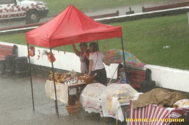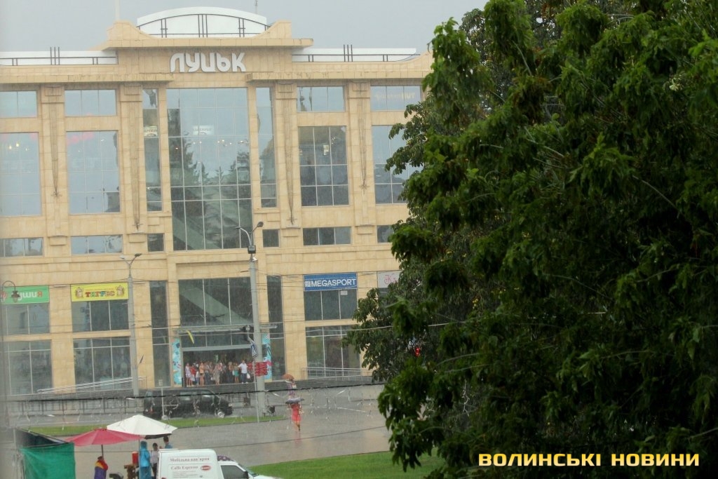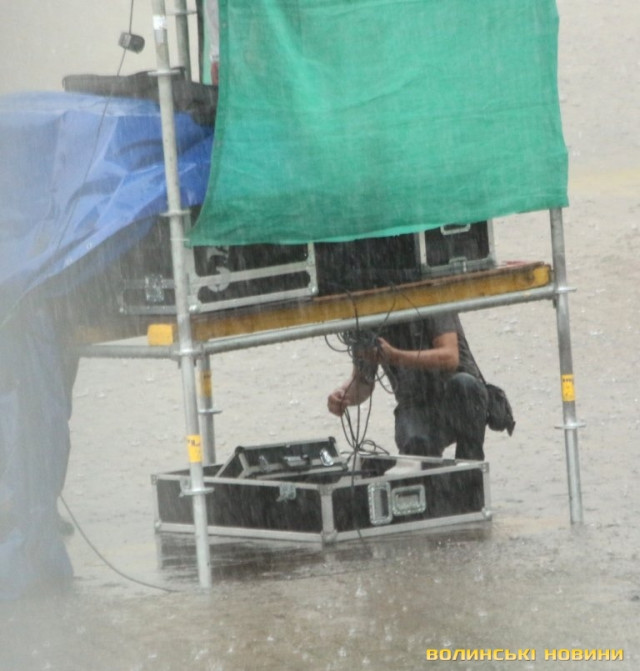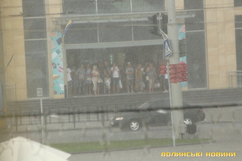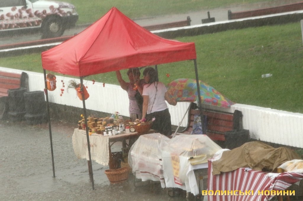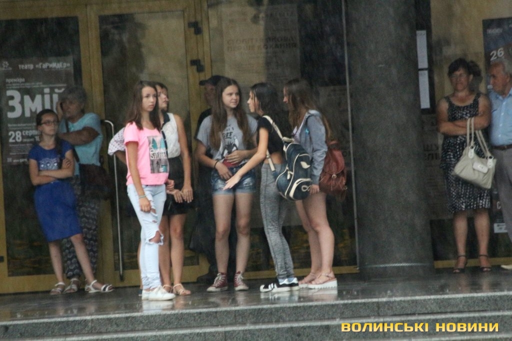 Приблизно о 16.00, коли на Театральному майдані планували провести майстер-класи з вивчення національних танців Польщі, Кореї та Ізраїлю, розпочалася гроза. Лучани, які планували взяти участь у дійстві, були змушені ховатися від зливи під навісом будівлі облмуздрамтеатру. Вже невдовзі Театральний майдан та центральні вулиці міста перетворилися на водойми – через недоліки зливової каналізації потоки води струмують транспортними магістралями міста, затоплені і тротуари.