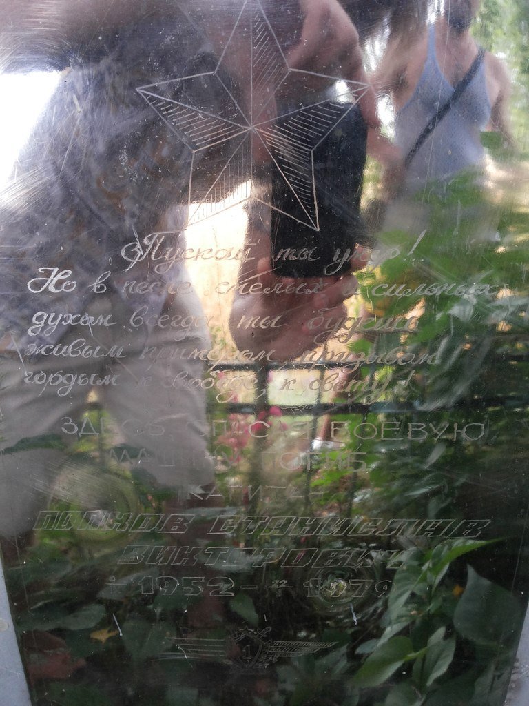 Тут, рятуючи бойову машину, загинув капітан ПОПКОВ СТАНІСЛАВ ВІКТОРОВИЧ (09.09.1952-22.01.1979)".