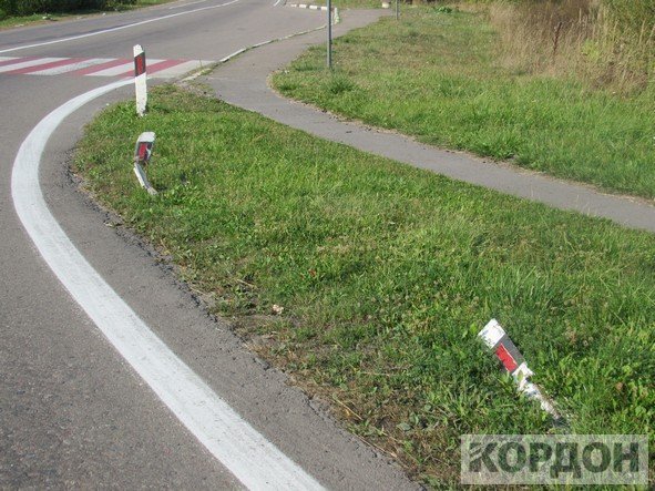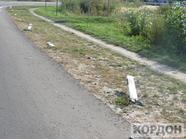 Дорожні знаки при в’їзді в Любомль погнули, а стовпчики, які показують межі проїжджої частини та напрямок руху вночі, абсолютно всі “полягли” рядком по обидві сторони шосе, - інформує КОРДОН.