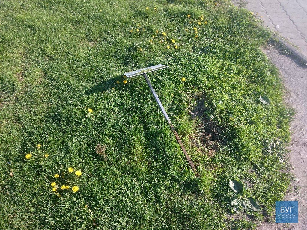 У ніч з 25 на 26 квітня невідомі особи перекинули та повиривали інсталяцію “Я люблю Володимир”, а також сусідні вказівники, інформує Буг.