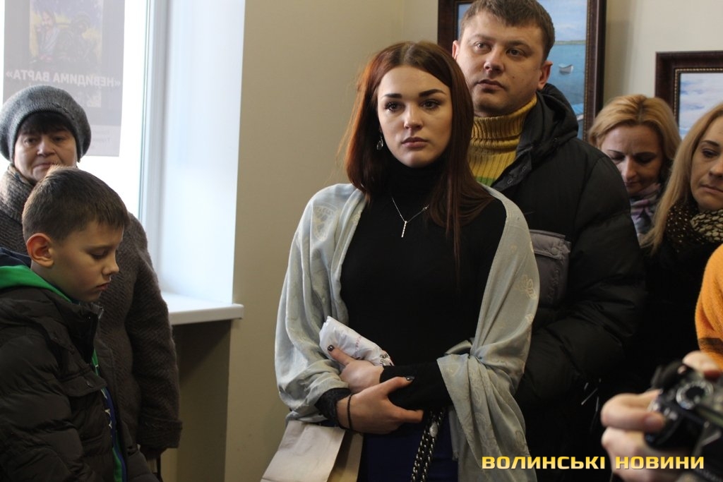 «Я втратила дитину, яка була для мене всім. Коли дивлюсь на ці портрети, то таке відчуття, що вони тут з нами, сповнені сил та енергії. Дякую за цю виставку та усім, хто прийшов. Сьогодні у Віктора день народження, тут від нього гостинці, тому прошу пригощатися цукерками», - запросила мама загиблого правоохоронця.«Україна сьогодні переживає складні часи, збройний конфлікт з Російською Федерацією та захопленням частини сходу. Працівники СБУ захищають суверенітет на сході України. Понад 100 отримали поранення під проведення АТО на сході, 18 загинуло, один з них – волинянин. До державних нагород представили 150 працівників СБУ, двоє стали Героями України», - розповів тимчасовий виконувач обов’язків начальника управління СБУ у Волинській області Цюцюра.Зауважимо, що експозиція включає 22 картини, виконані художницями Лесею та Олександрою Шиденками.