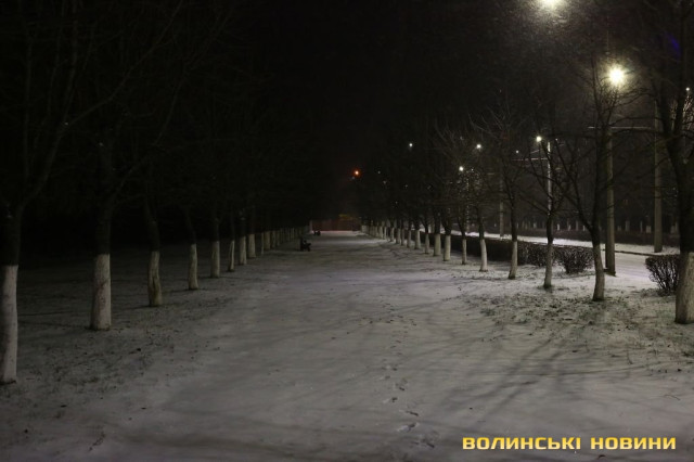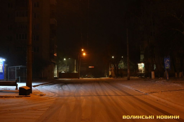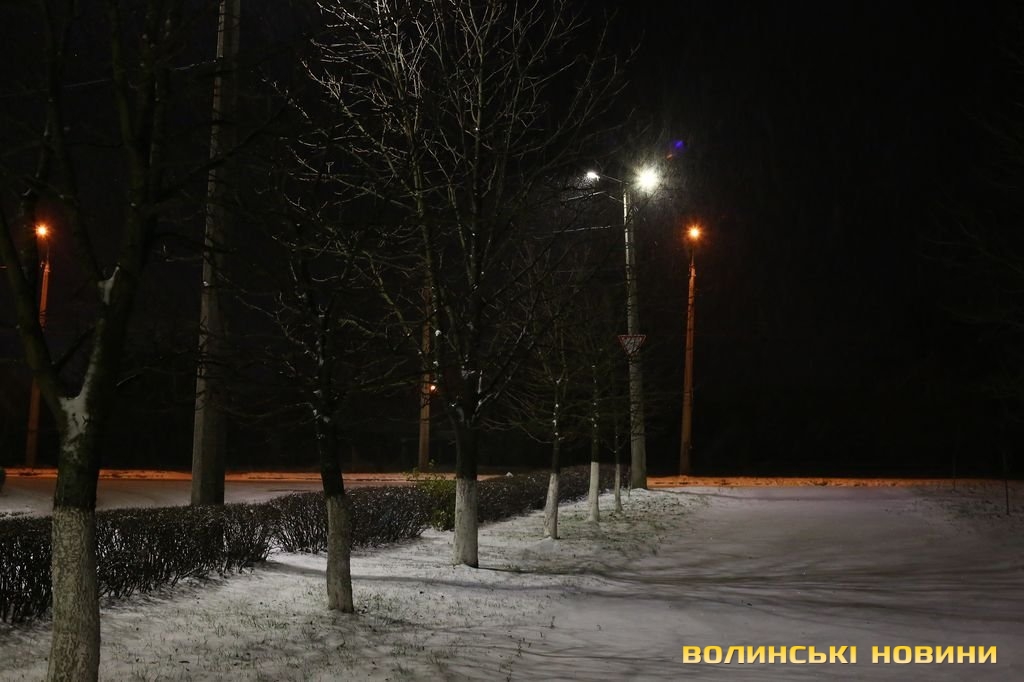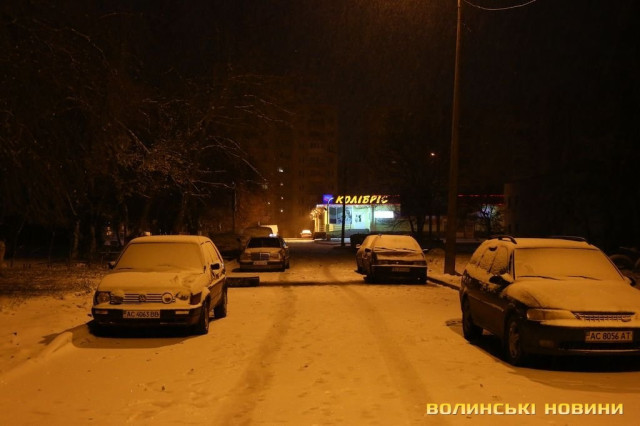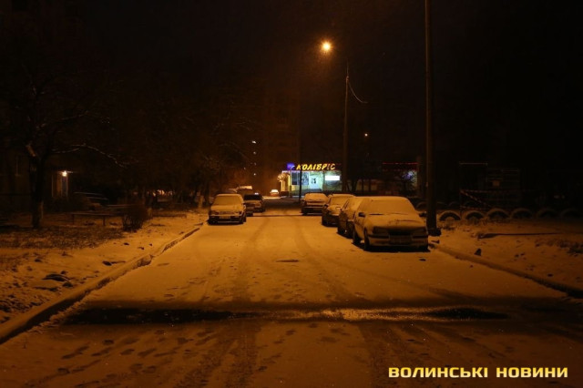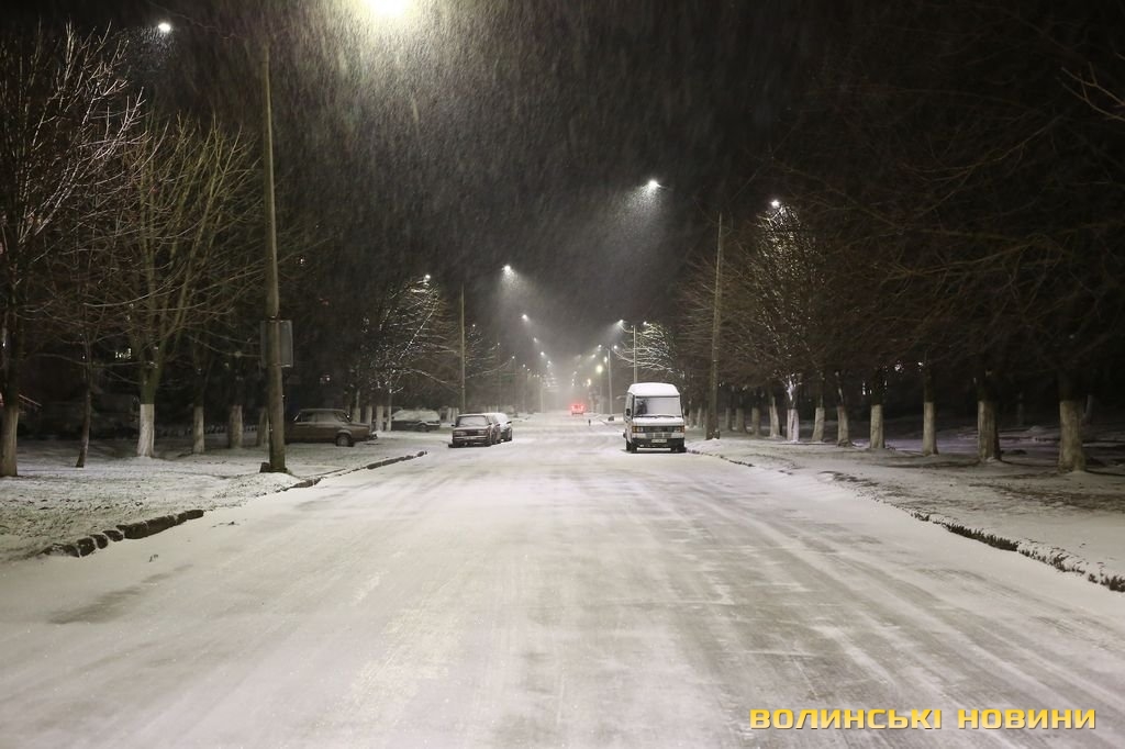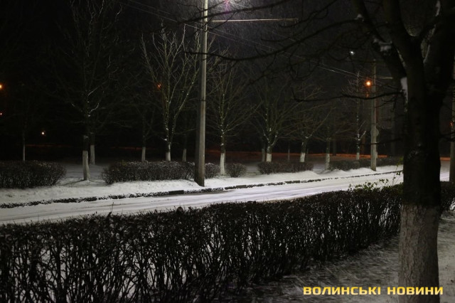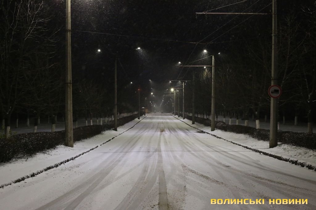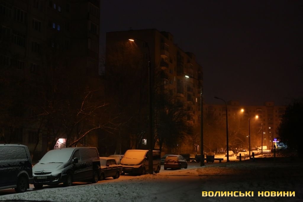 Дві осінні «репетиції» увінчались першим повноцінним снігопадом, який накрив чи не все місто. Під сніжним покривом «заснуло» місто – дороги, будинки, тротуари та рослини. Ось такою цьогорічну зиму побачили жителі мікрорайону ЛПЗ міста Луцька нічної пори.