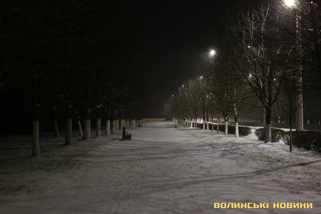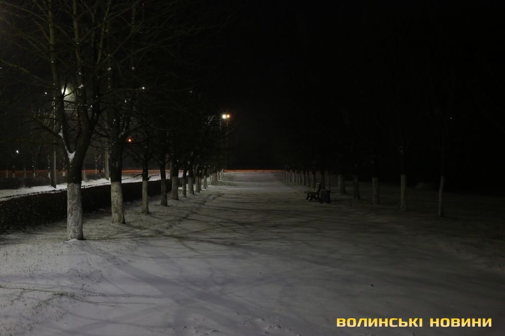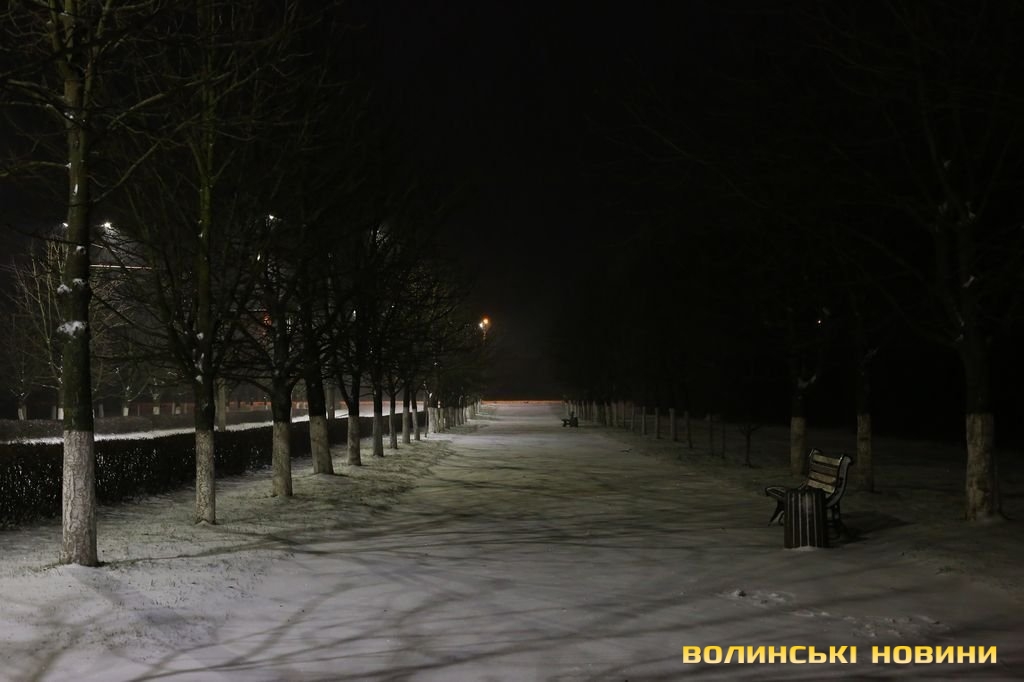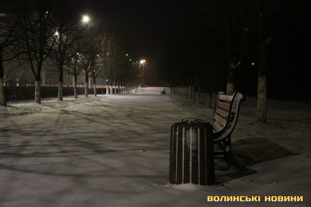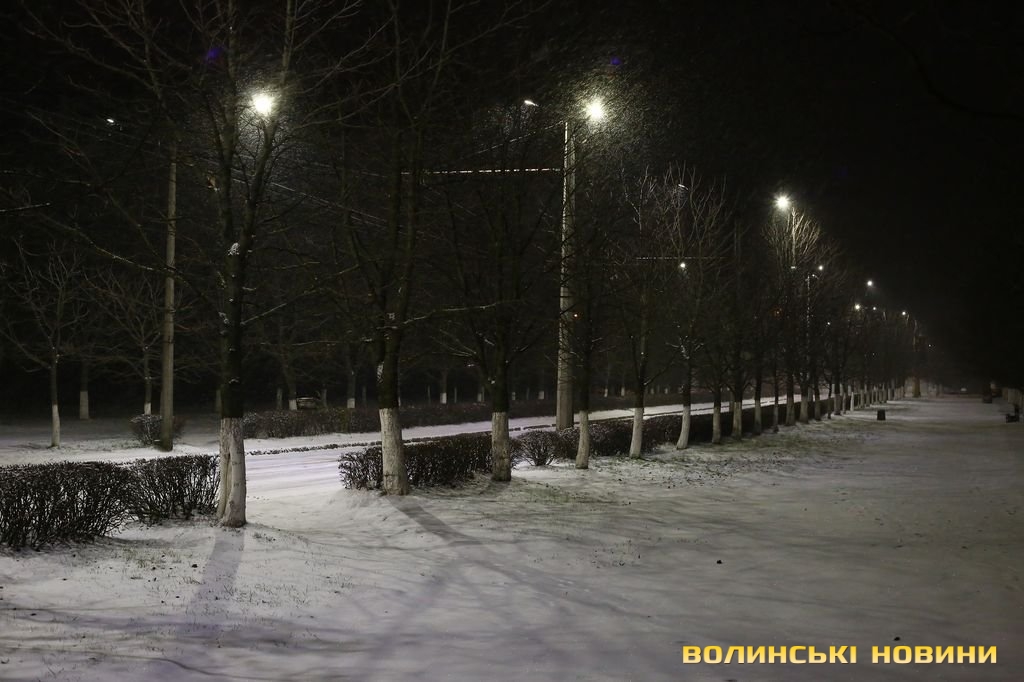 Нічний Луцьк накрило снігом. Фоторепортаж