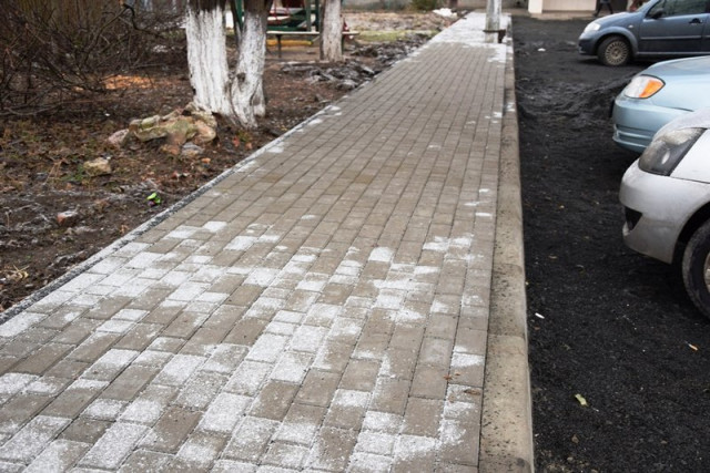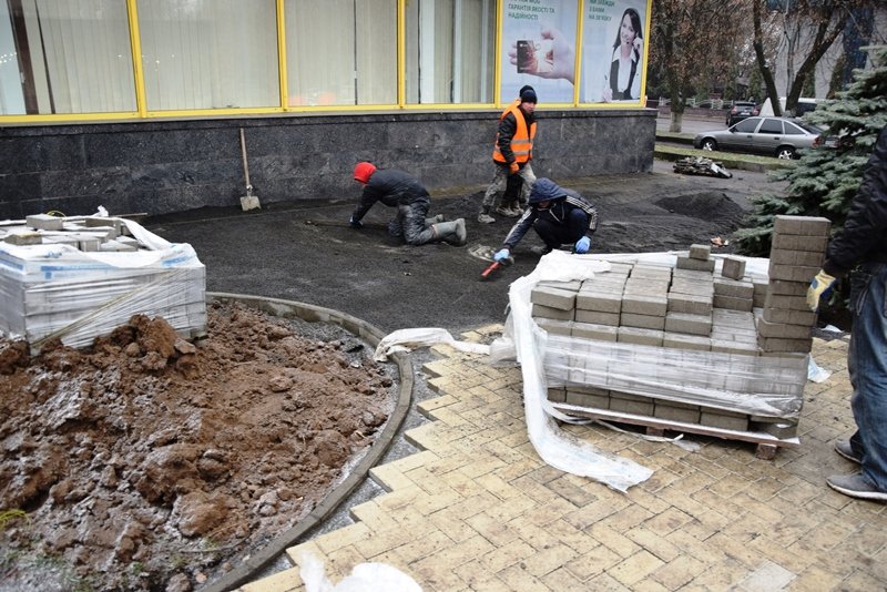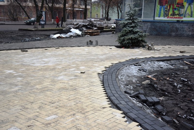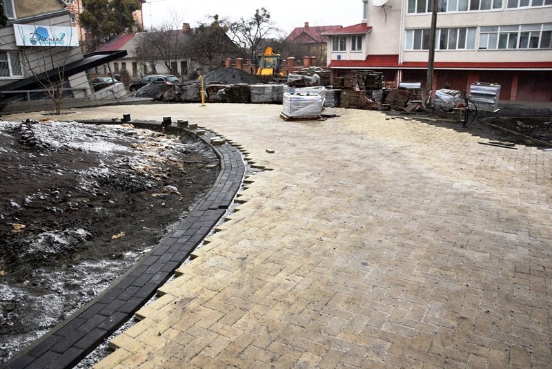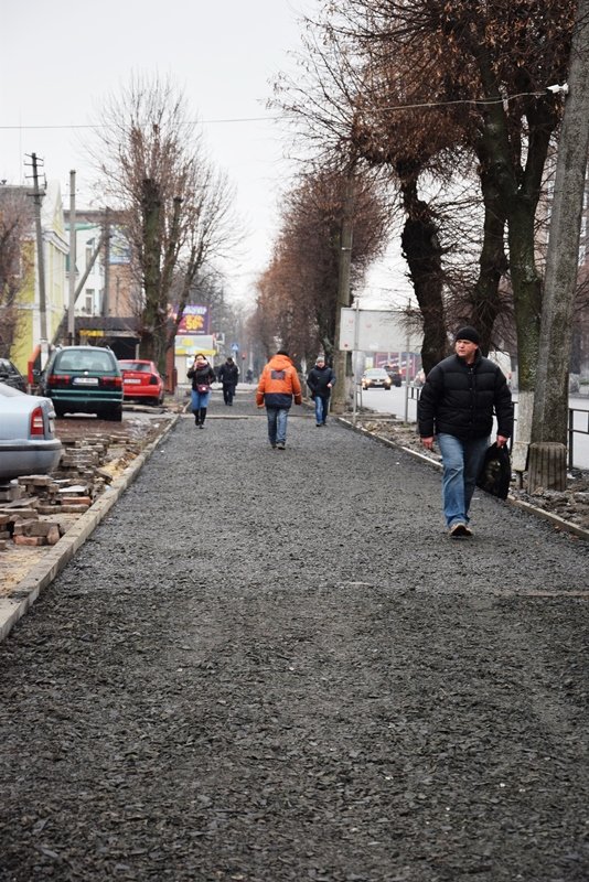Поруч із будинками бруківкою облаштовується і пішохідна зона вздовж дороги, від вулиці Шевченка до вулиці Глінки.
